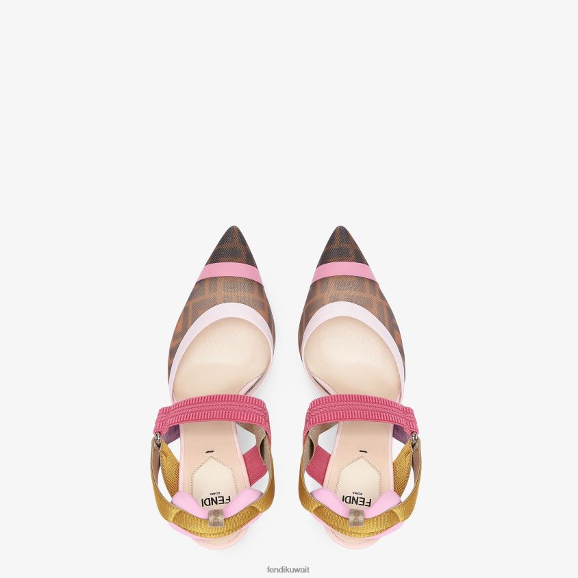 Fendi بني نحيف شبكة أحذية خفيفة ذات الكعب العالي RTJZ1392 أحذية