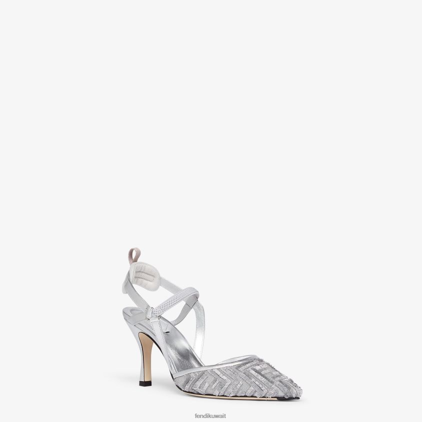 Fendi فضة نحيف شبكة أحذية خفيفة ذات الكعب العالي RTJZ1345 أحذية