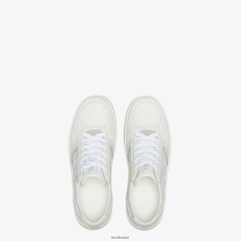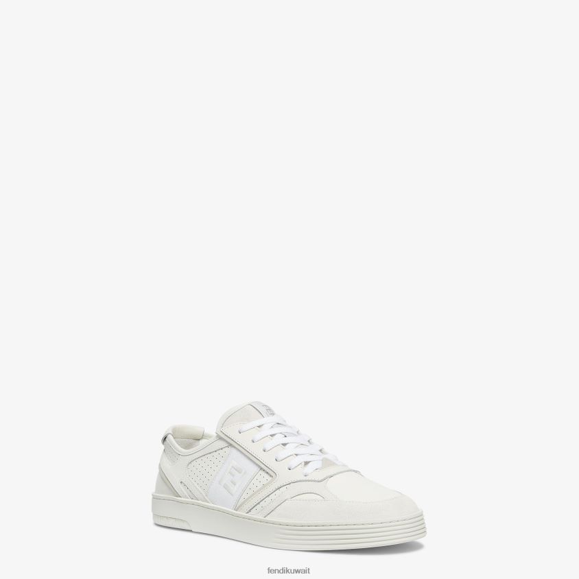 أحذية رياضية برباط. مصنوع من الجلد الأبيض. تفاصيل من جلد الغزال باللون الرمادي الفاتح. مزين بثقوب دقيقة على الجوانب وشريط بتطريز ff. نعل مطاطي مع حروف فندي روما في الخلف.