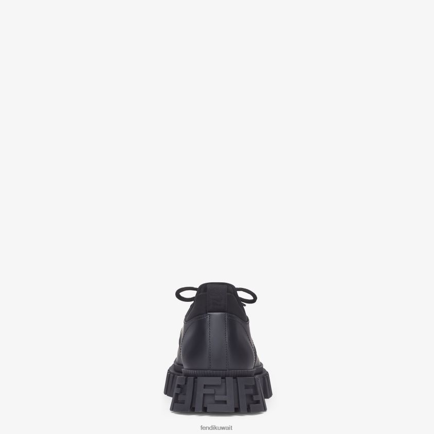 فندي قوة الأربطة. مصنوع من الجلد الأسود. تفاصيل من قماش الجاكار باللونين الرمادي والأسود. الياقة مزينة بالليكرا. نعل مطاطي خفيف مع تفاصيل منقوشة على الكعب.