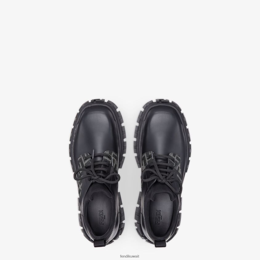Fendi أسود رجال الأربطة الجلدية RTJZ2309 أحذية