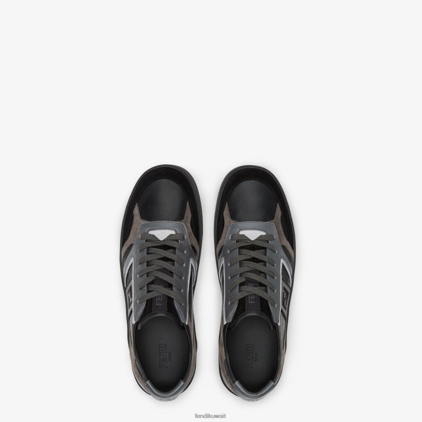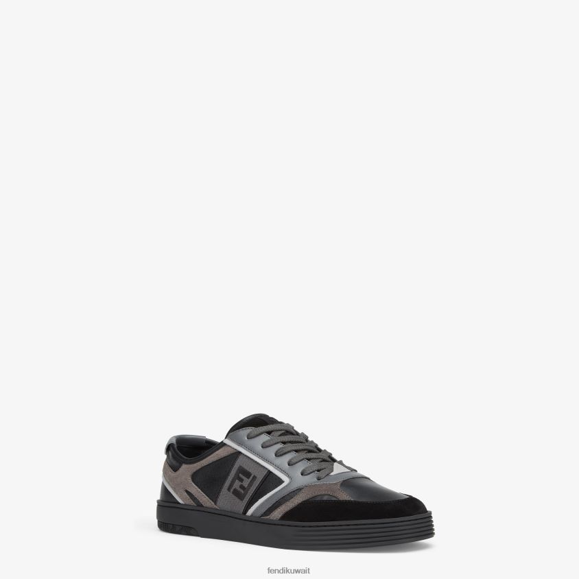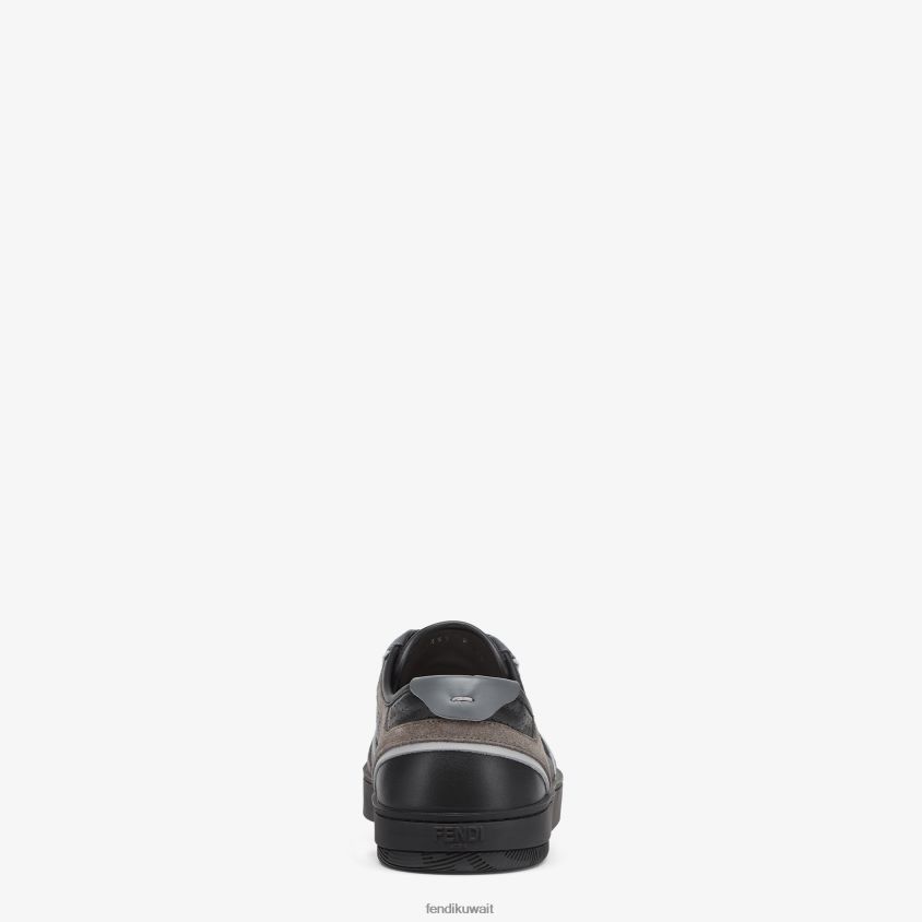 أحذية رياضية برباط. مصنوع من الجلد الأسود. تفاصيل من جلد الغزال الرمادي. مزين بثقوب دقيقة على الجوانب وشريط بتطريز ff. نعل مطاطي مع حروف فندي روما في الخلف.