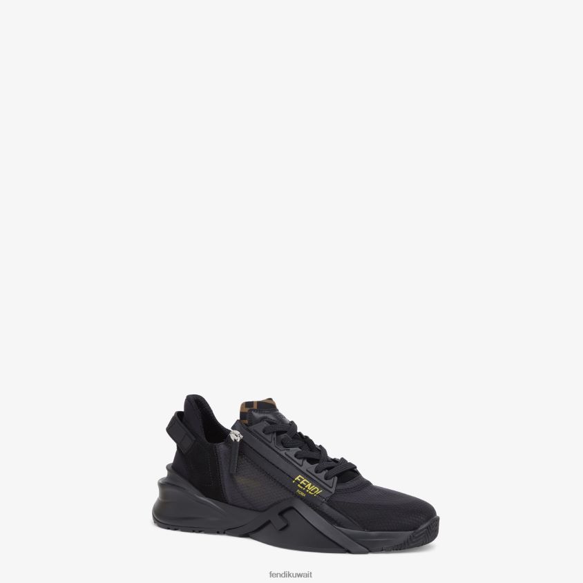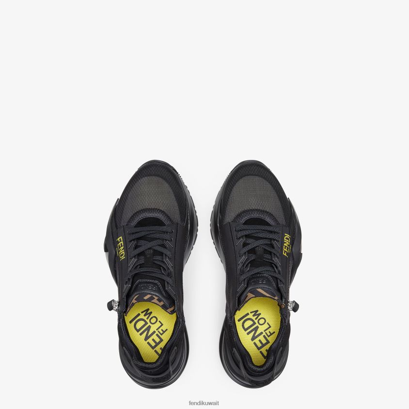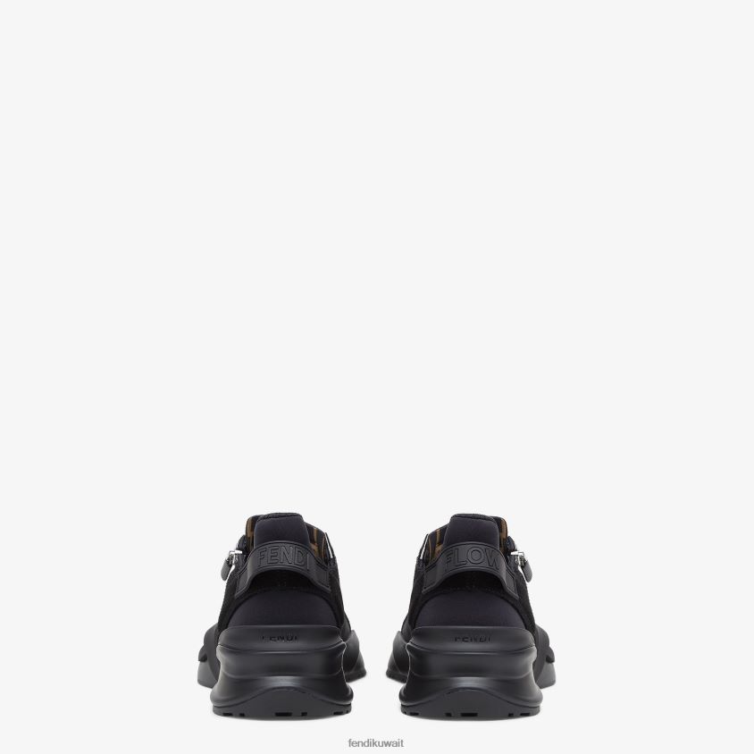 حذاء رياضي سهل الارتداء مع أربطة مطاطية وسحاب جانبي ونعل مموج مع نقش F. حروف فندي المتدفقة منقوشة على الكعب. مصنوع من مزيج من الأقمشة التقنية والجلد المدبوغ باللون الأسود. مزين بتفاصيل ليكرا. اللسان مع عزر ff. نعل إيفا.