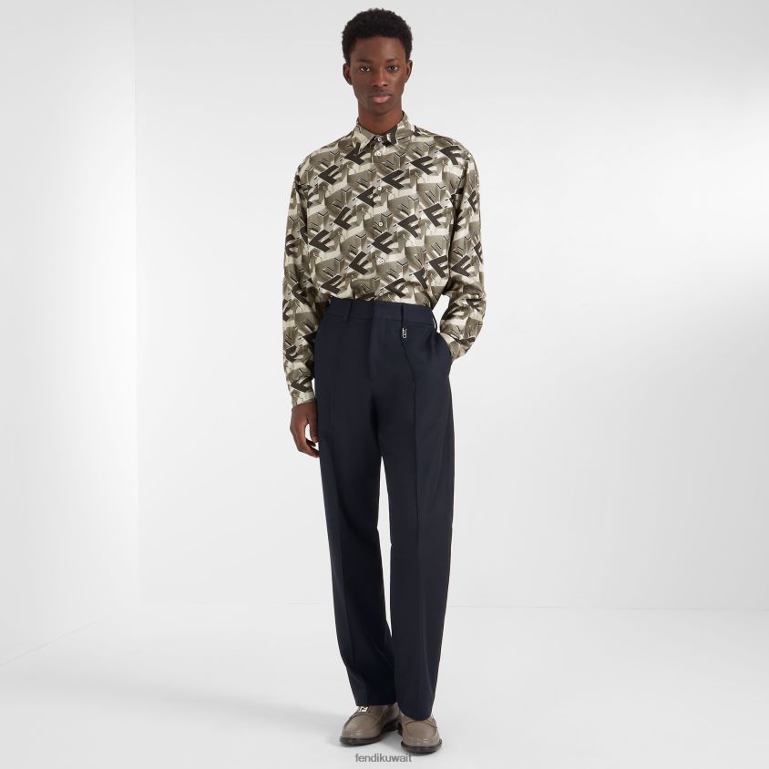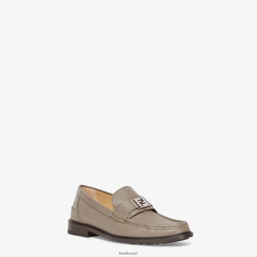 حذاء لوفر بزخارف مربعة ff. مصنوع من الجلد البيج. باطن جلدية. أدوات معدنية مطلية بالبلاديوم.