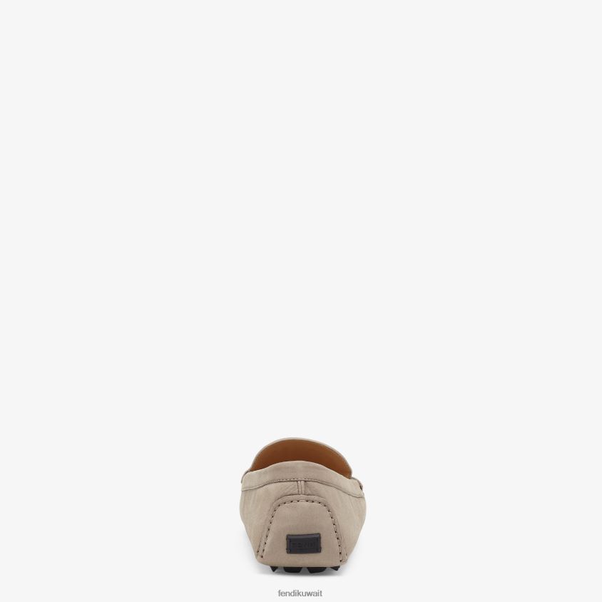 المتسكعون القيادة. باطن حصاة مرنة. مصنوع من جلد نوبوك باللون البيج مع تفاصيل من القماش البني والتبغ. مزين بإبزيم معدني من فندي أولوك مع لمسة نهائية من البلاديوم.