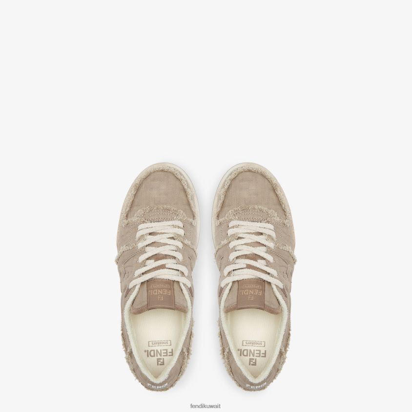 أحذية فندي الرياضية ذات الأربطة. مصنوعة من قماش باللون البيج مع زخرفة جاكار ff. تفاصيل بيضاء. انتهى بحواف مهدب. نعل مطاطي متين مع حروف فندي على الجانب.
