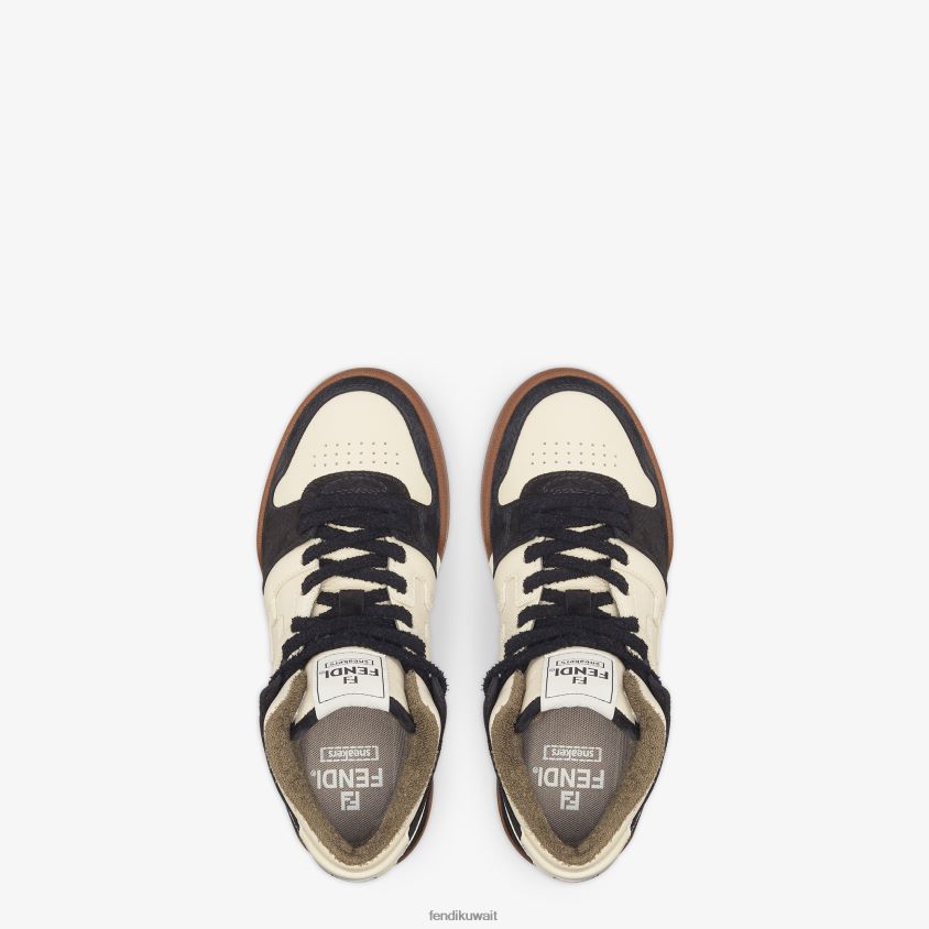 أحذية فندي الرياضية ذات الأربطة. مصنوع من الجلد الأبيض مع تفاصيل من جلد الغزال الأسود. نعل مطاطي مع حروف فندي على الجانب.