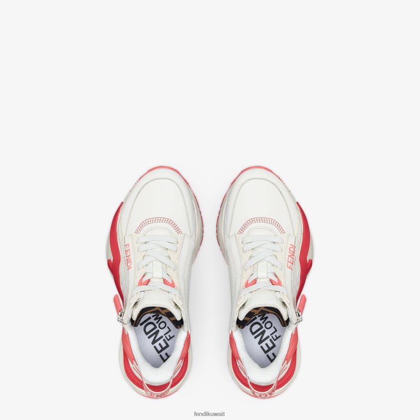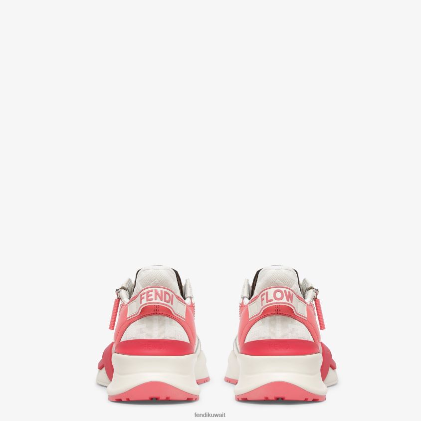 حذاء رياضي فندي فلو مع أربطة مرنة قابلة للتعديل وسحاب جانبي للإغلاق. مزين بنقش ff على اللسان وشريط مطاطي مع شعار منقوش على الجزء الخلفي من الكعب. مصنوع من الجلد الأبيض. تفاصيل نسيج ff. نعل مطاطي مقاس 35 ملم مع تفاصيل قطرية وردية.