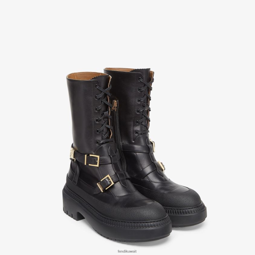 Fendi أسود نحيف أحذية جلدية لراكبي الدراجات النارية RTJZ1264 أحذية