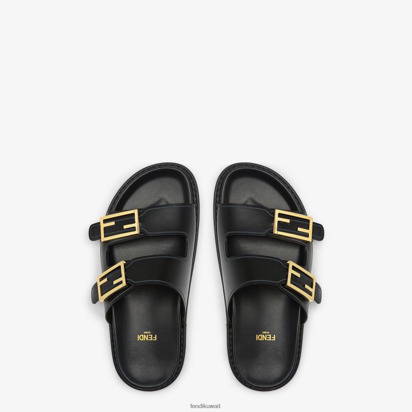 Fendi أسود نحيف يشعر الشرائح الجلدية RTJZ1315 أحذية