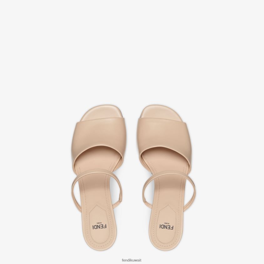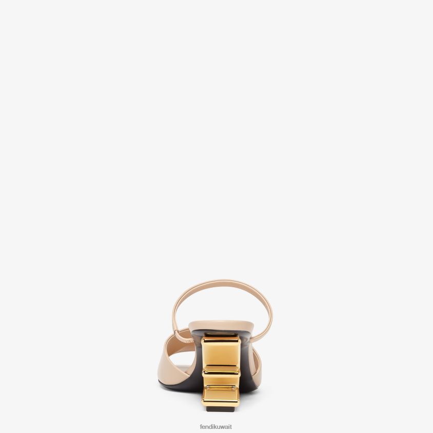 Fendi اللون البيج نحيف الصنادل الجلدية ذات الكعب المتوسط RTJZ1371 أحذية
