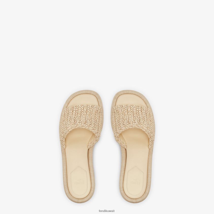 Fendi اللون البيج نحيف شرائح الرافية الشاحبة RTJZ1307 أحذية