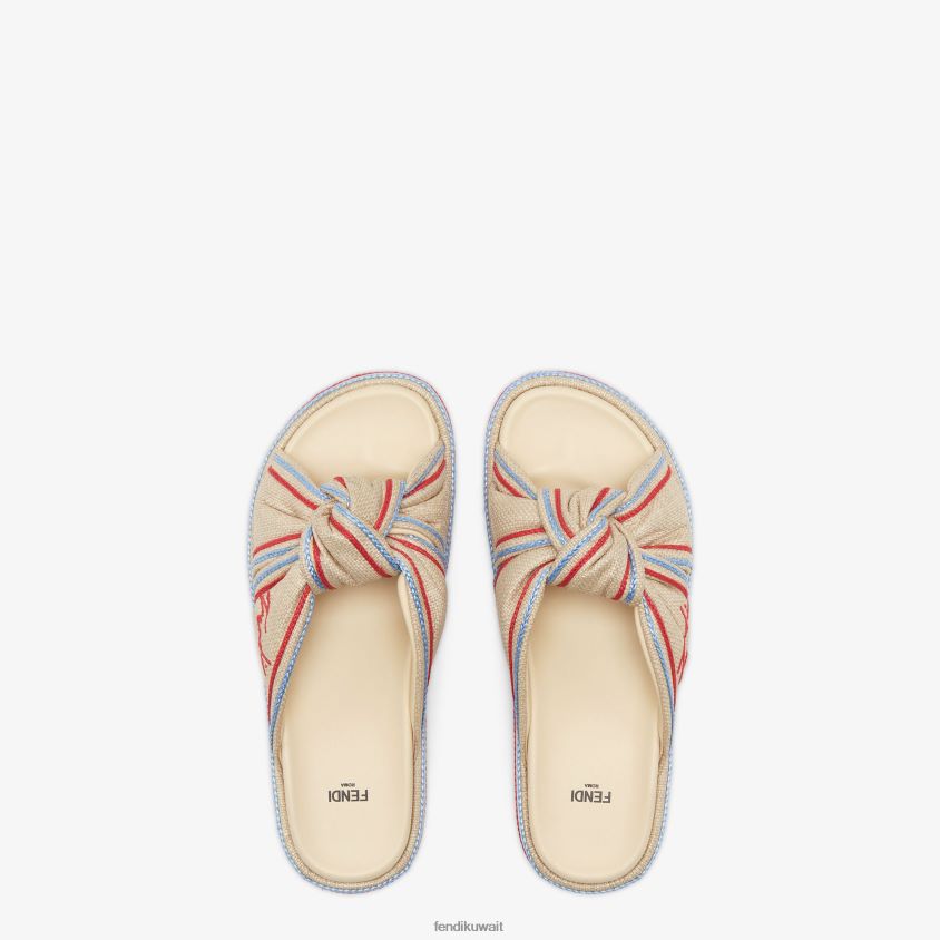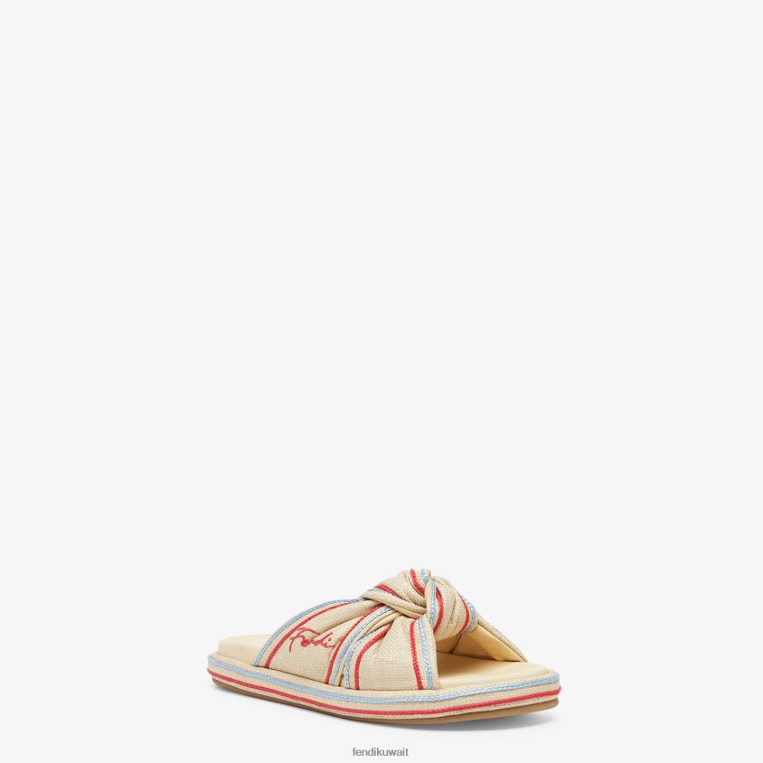 Fendi اللون البيج نحيف شرائح الرافية الشاحبة RTJZ1310 أحذية