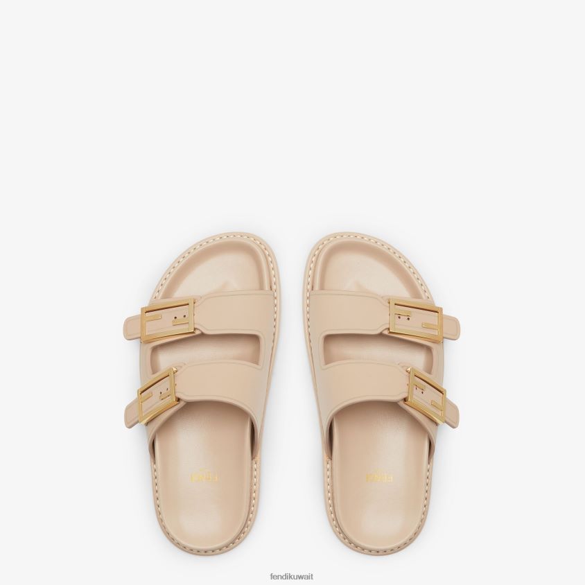 Fendi اللون البيج نحيف يشعر الشرائح الجلدية RTJZ1393 أحذية