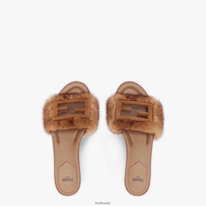 Fendi بني نحيف شرائح المنك RTJZ1333 أحذية