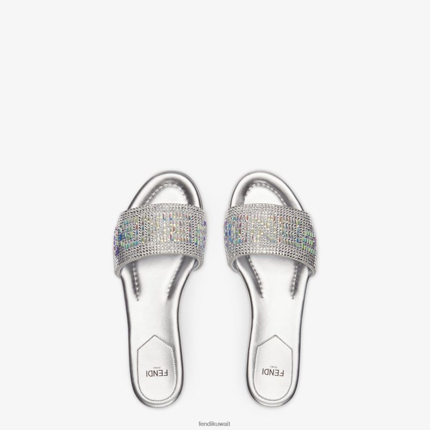 Fendi فضة نحيف شرائح جلدية مميزة RTJZ1316 أحذية