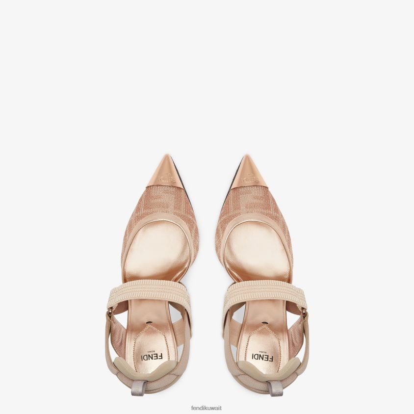 حذاء كوليبري انسيابي وأنثوي مع أشرطة مرنة تلتف حول القدم. النعل مزين بإدخالات مطاطية. مصنوعة من شبكة صغيرة باللون الوردي مع شعار ff مع تفاصيل جلدية ذات تأثير معدني. مزين بغطاء معدني ذهبي وردي. تضيف الوسادة المبطنة وشريط حذاء المشي لمسافات طويلة لمسة رياضية. كعب مطلي بالمينا باللون الذهبي الوردي.
