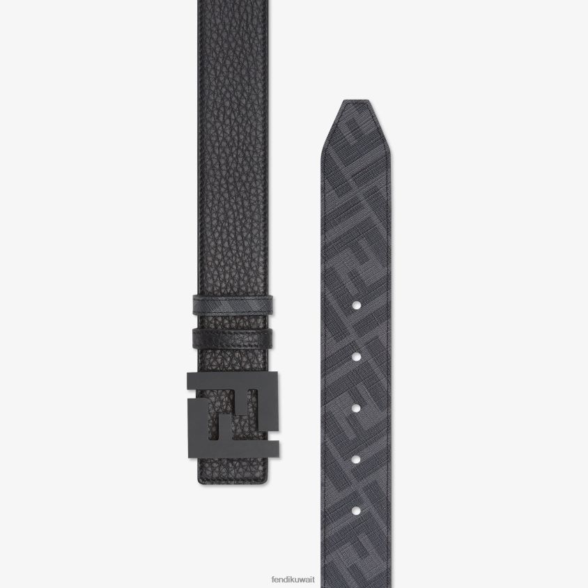 Fendi أسود رجال حزام جلدي ذو وجهين ff RTJZ2330 مُكَمِّلات