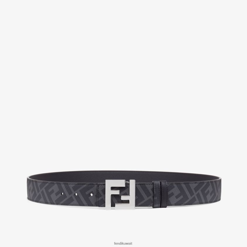 حزام ذو وجهين. إبزيم مسماري مبدع. مصنوع من الجلد الأسود. بطانة من القماش بزخارف ff باللونين الأسود والرمادي. أدوات معدنية مطلية بالبلاديوم.