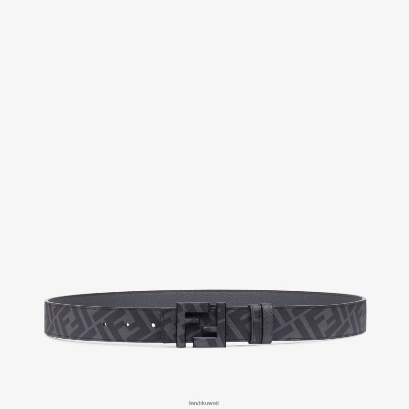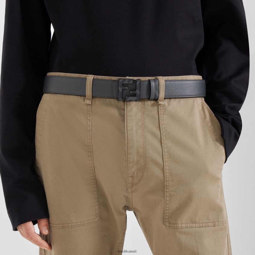 Fendi رمادي رجال حزام جلدي ذو وجهين ff RTJZ2473 مُكَمِّلات