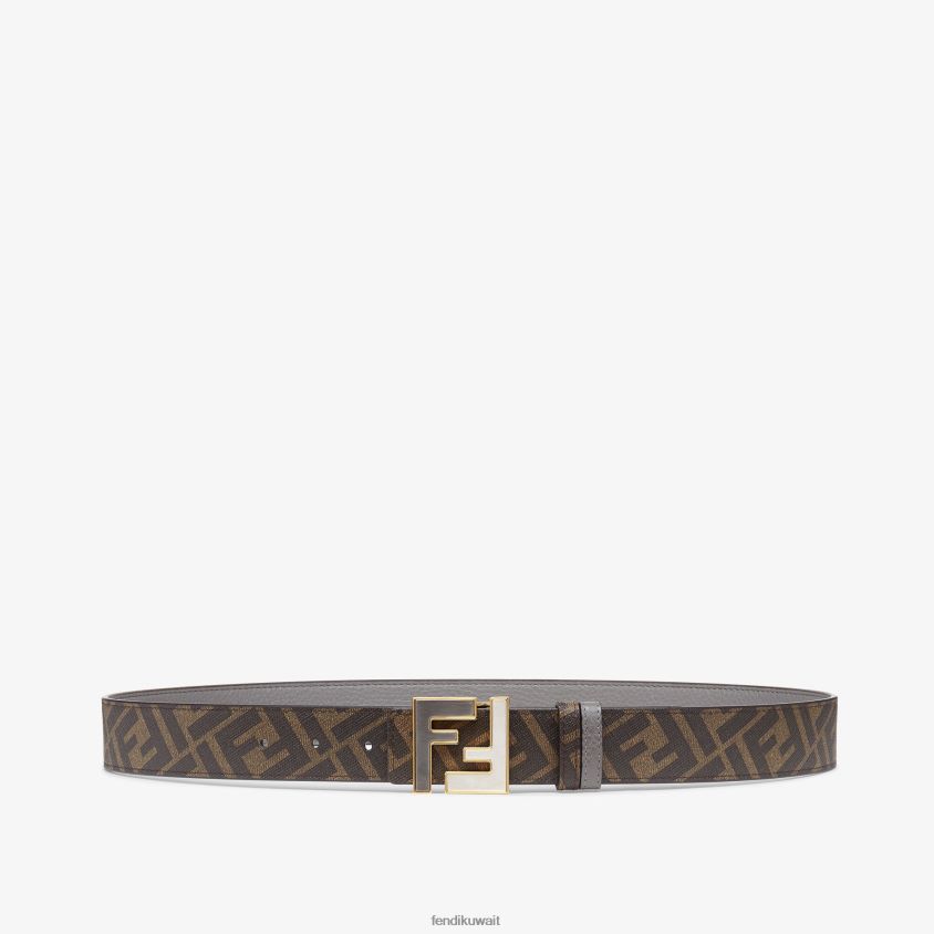 Fendi رمادي رجال حزام جلدي ذو وجهين ff RTJZ2481 مُكَمِّلات