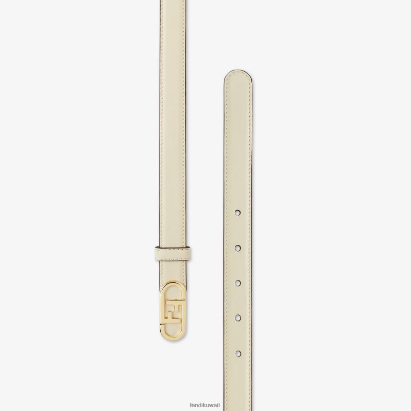 حزام ضيق مع حلقة وإبزيم فندي أولوك. مصنوع من الجلد الأبيض. أدوات معدنية مطلية بالذهب.