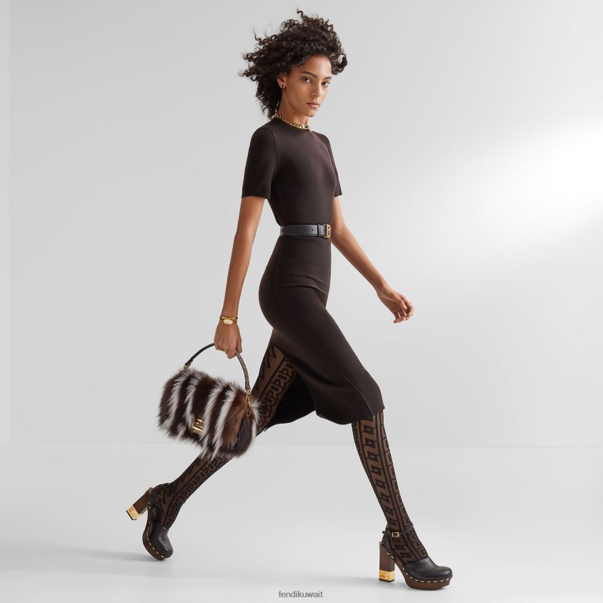 حزام مع حلقة حارس وإبزيم مسمار ff الشهير. مصنوع من الجلد الأسود. أدوات معدنية مطلية بالذهب.