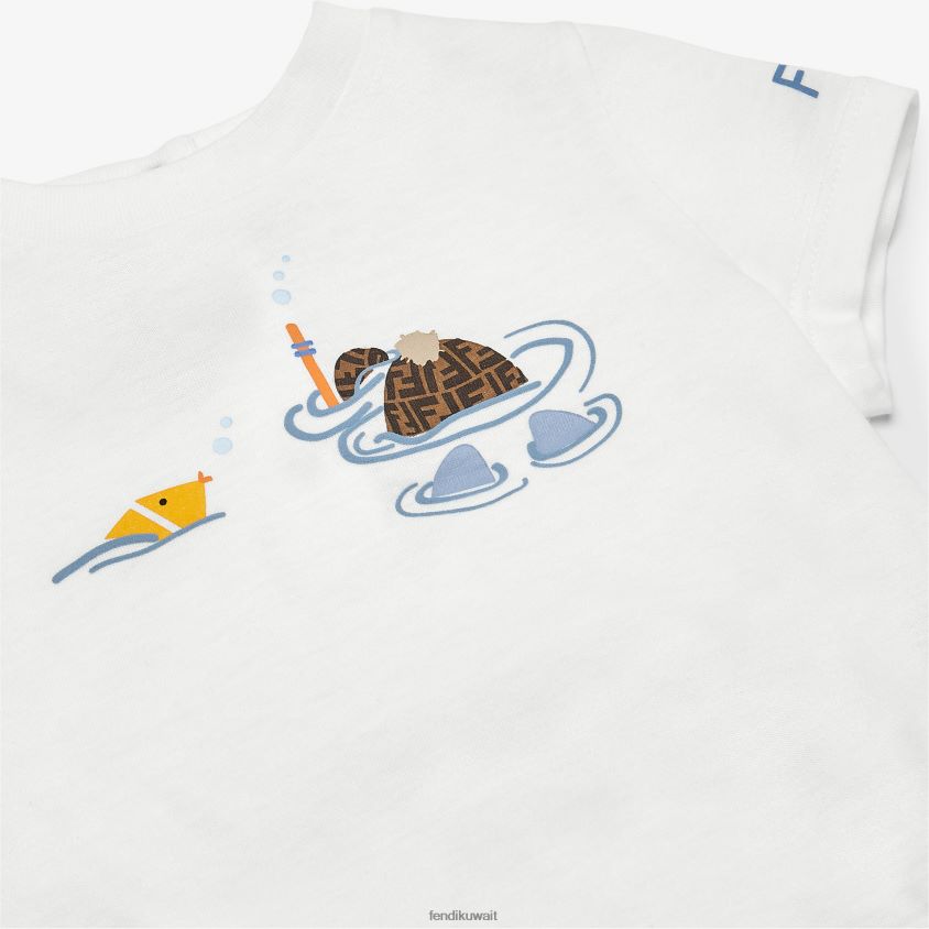 Fendi أبيض أطفال تي شيرت جيرسي تيدي بير RTJZ2796 ثياب