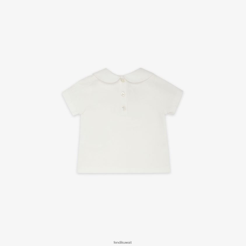 Fendi أبيض أطفال تي شيرت جيرسي للأطفال مع تطريز RTJZ2770 ثياب