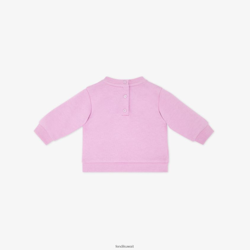 سويت شيرت لحديثي الولادة مصنوع من القطن الوردي مع طبعة فندي روما باللون الليلكي على الجهة الأمامية.