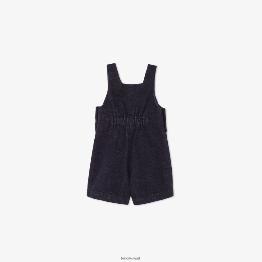سالوبيت أطفال من قماش الدنيم باللون الأزرق الداكن مع تطريز دب فندي على الجهة الأمامية.