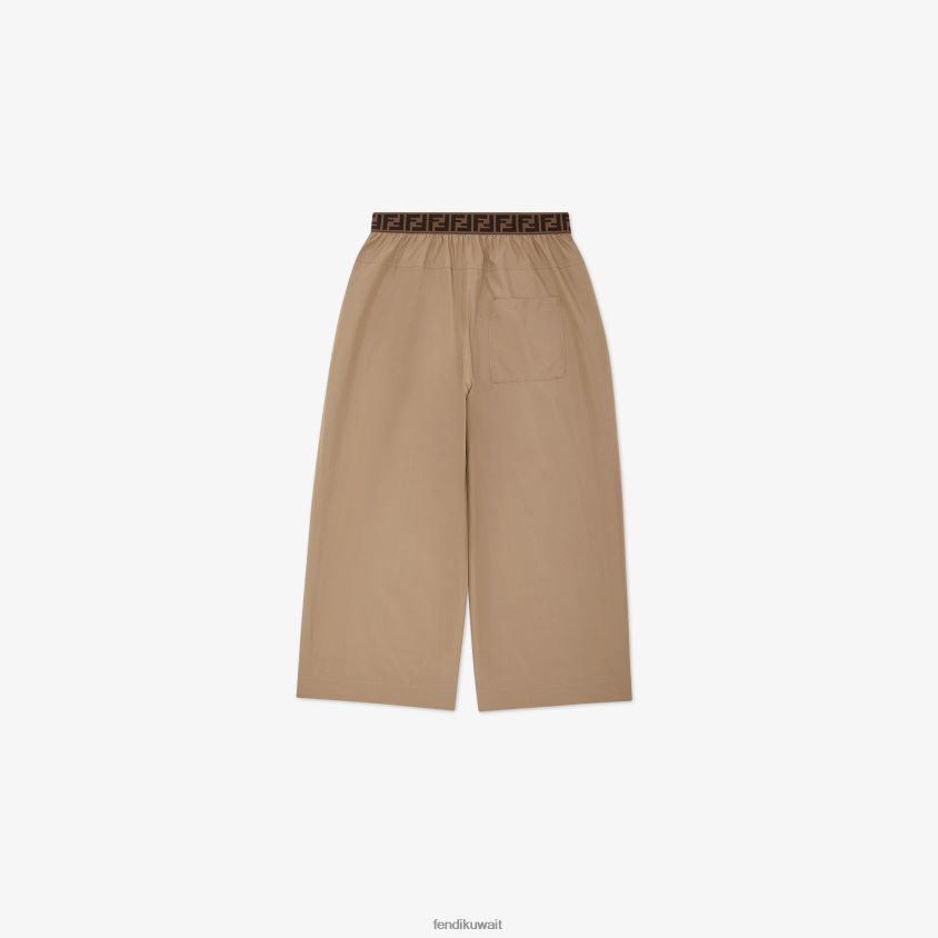 بنطلون للصغار بطيات من النايلون والقطن باللون البيج، مع حزام خصر مرن يحمل شعار ff بلون التبغ.