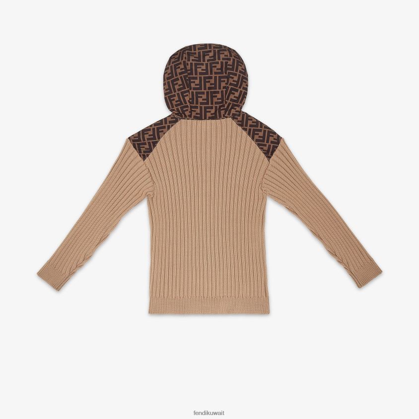 Fendi اللون البيج أطفال سترة منسوجة من القطن وسترة من النايلون RTJZ2962 ثياب