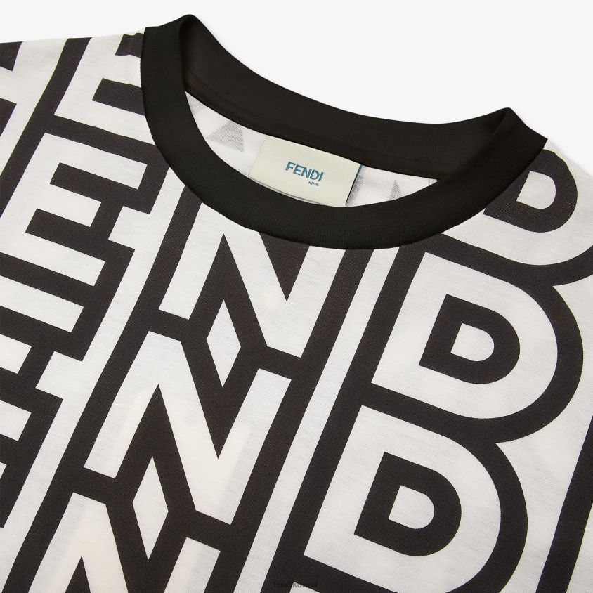 جونيور ميني مي جيرسي تي شيرت. جزء من إصدار فندي باي مارك جاكوبس المحدود، يحتوي هذا الطراز على شعار فندي روما كبير باللونين الأسود والأبيض.