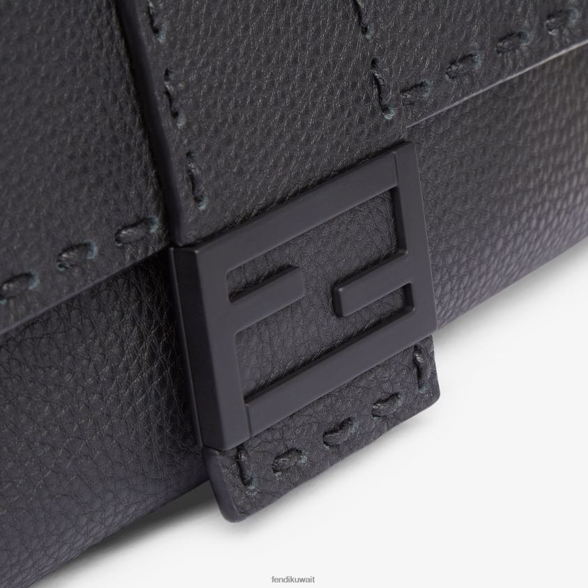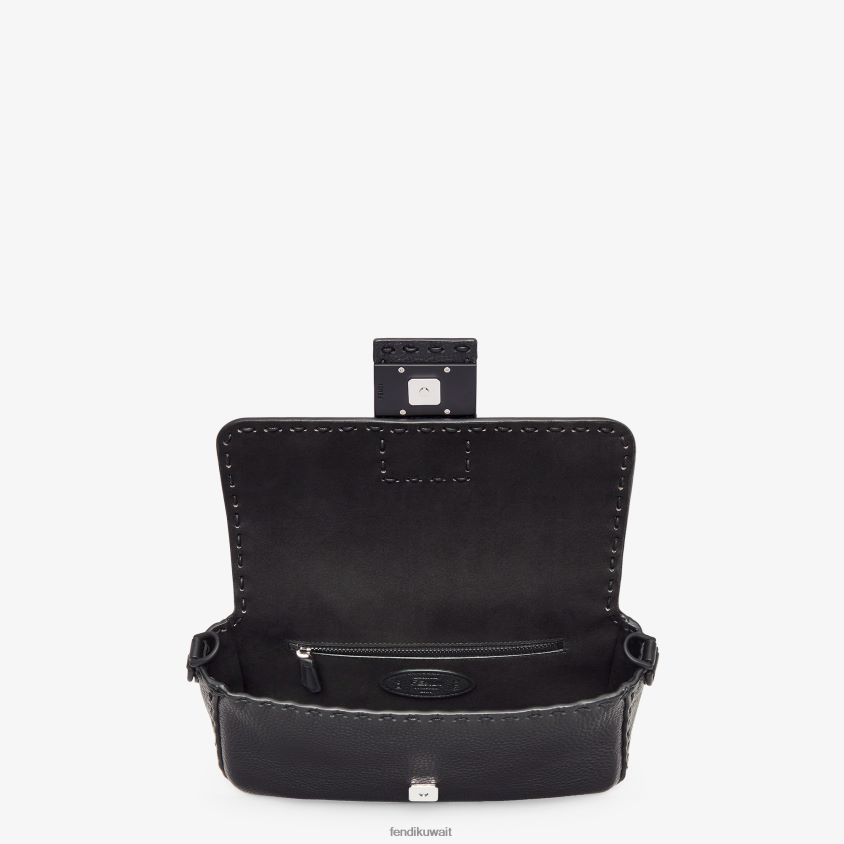 حقيبة باغيت مصنوعة من جلد cuoio romano باللون الأسود ومزينة بدرزات متناغمة ومخيطة يدويًا. قلاب مربع مع إغلاق مغناطيسي على شكل حرف FF.