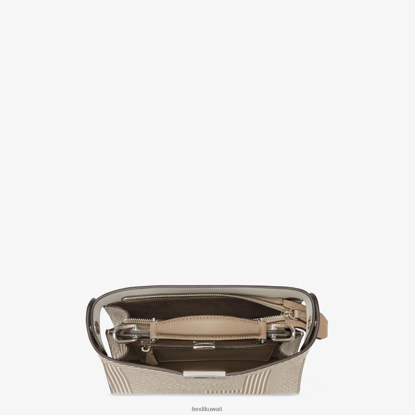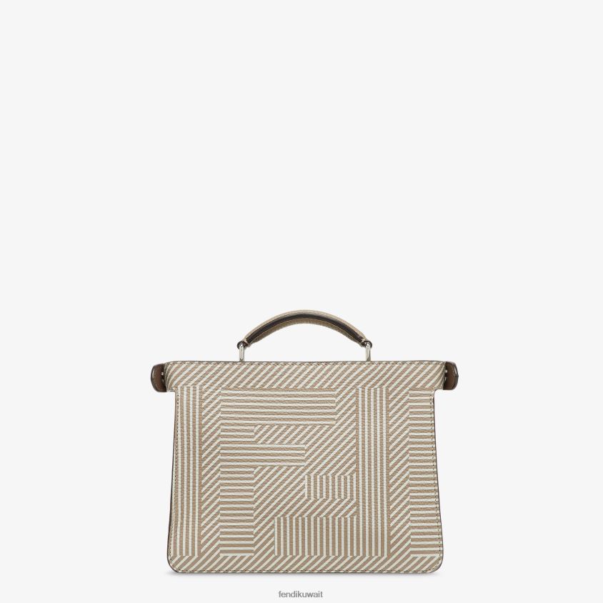 حقيبة بيكابو إيسيو صغيرة مصنوعة من جلد كويو رومانو مطبوع عليها رسم ظل فندي ماكرو بالكامل باللونين البيج والأبيض.
