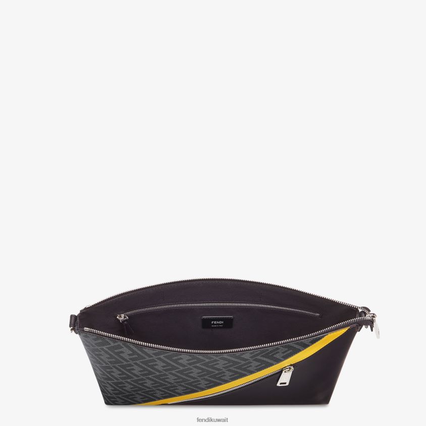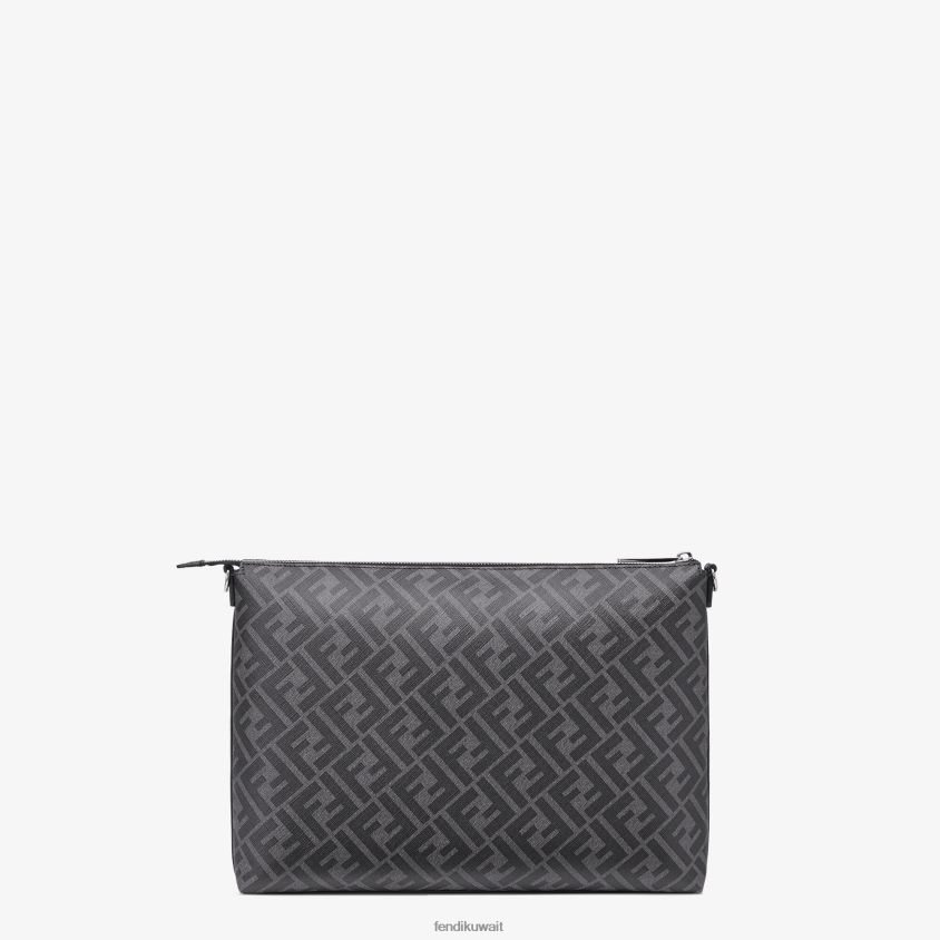 حقيبة ساعي رفيعة مزودة بحجرة مركزية مع سحاب للإغلاق. جيب داخلي بسحاب. حزام كتف قابل للتعديل والفصل. مصنوعة من قماش رمادي مزخرف بزخارف ff. مزين ببطانة من الجلد الأسود وتفاصيل مطعمة باللون الأصفر. حزام كتف من القماش الأسود. أدوات معدنية مطلية بالبلاديوم.