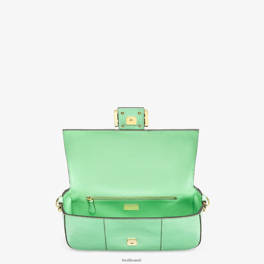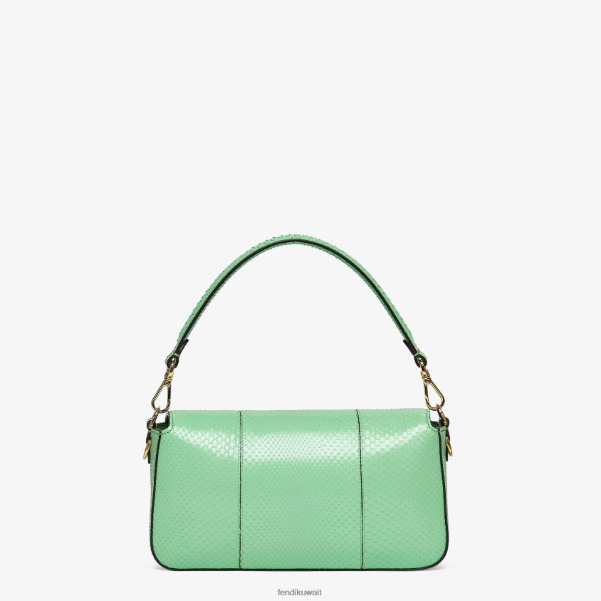 حقيبة باغيت متوسطة الحجم مصنوعة من جلد الثعبان الأخضر الرائع ومزينة بمشبك ff.