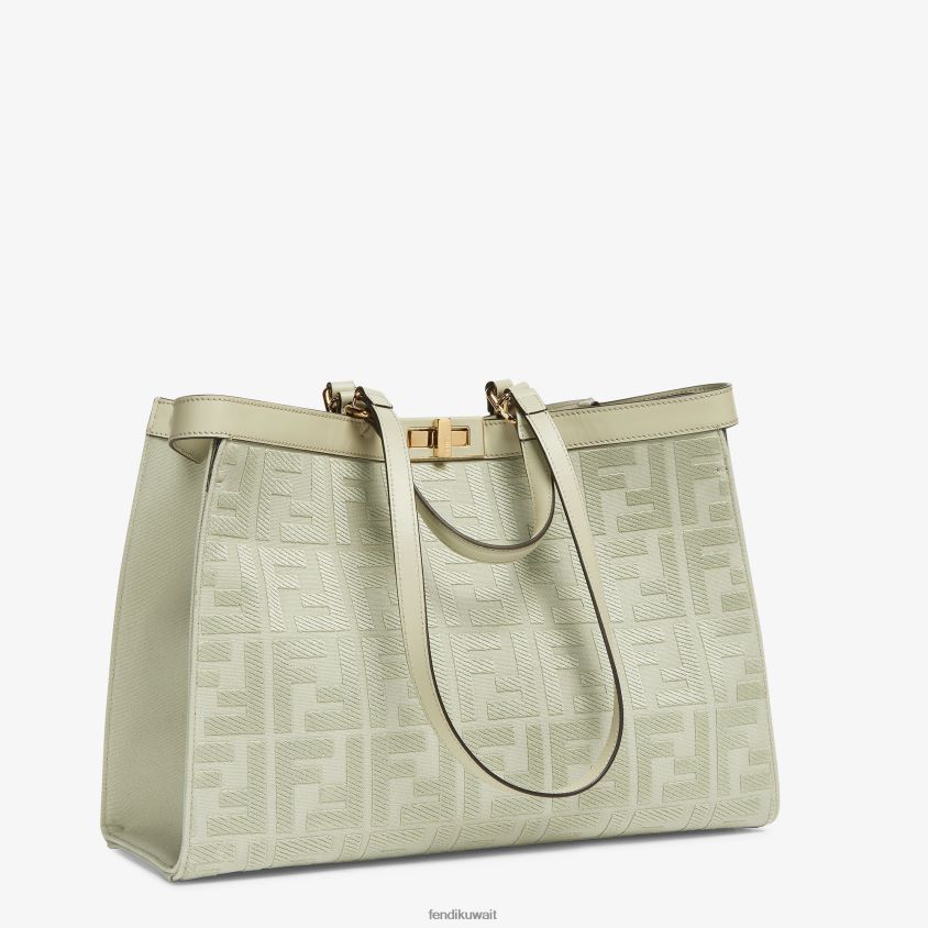 Fendi أخضر نحيف متسوق قماش مع تطريز ff RTJZ720 مُكَمِّلات