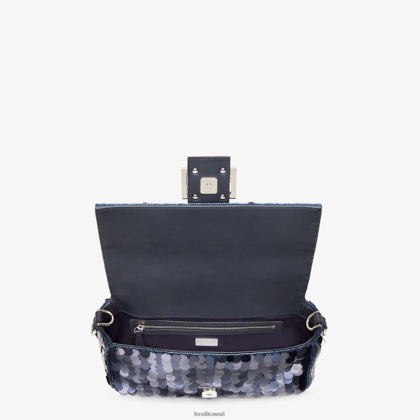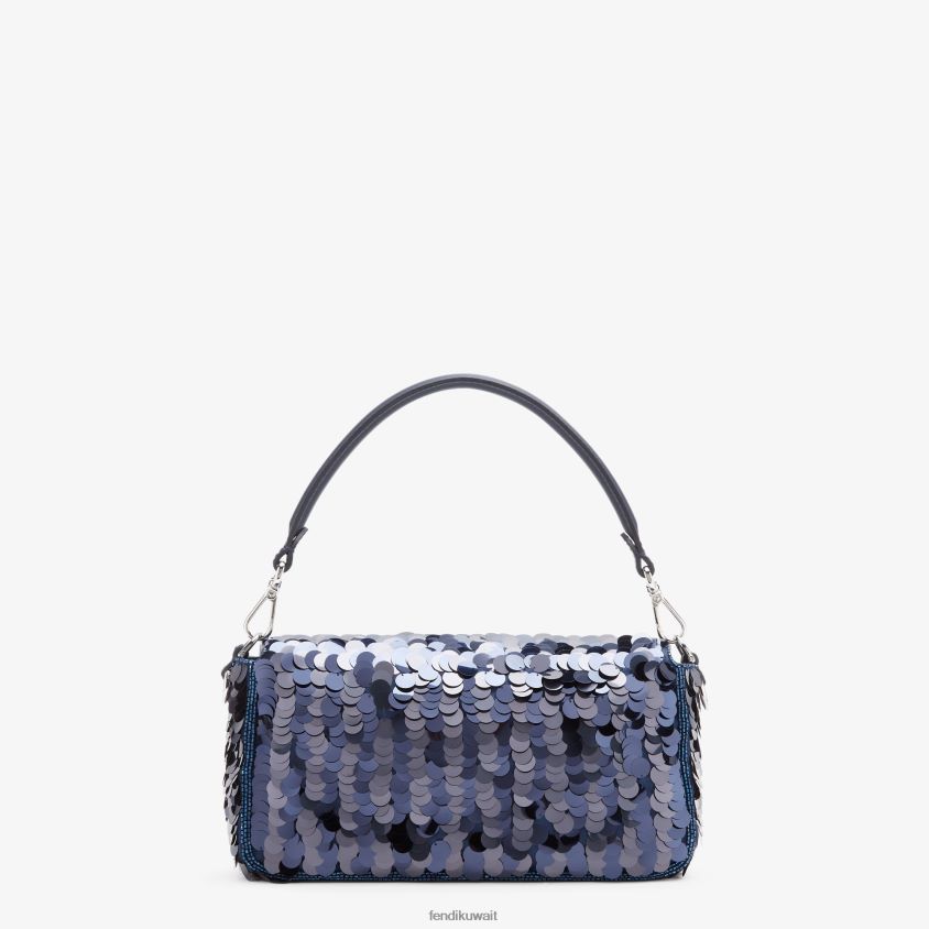 حقيبة باغيت متوسطة الحجم ومطرزة بالكامل بالترتر بأحجام مختلفة بدرجتين من اللون الأزرق لإضفاء تأثير مخطط. مزينة بمشبك على شكل حرف ff.
