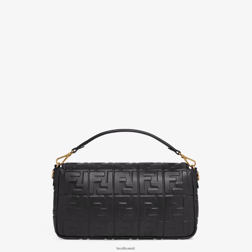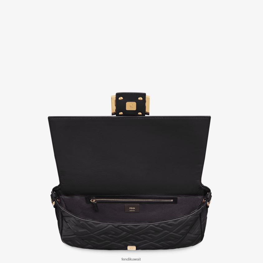 حقيبة باغيت كبيرة أيقونية مصنوعة من جلد نابا الناعم باللون الأسود مع شعار ff ثلاثي الأبعاد. مزين بمشبك ff.