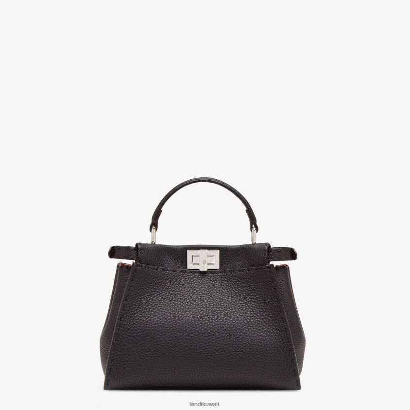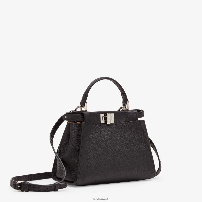 حقيبة بيكابو صغيرة أيقونية مصنوعة من جلد كويو رومانو باللون الأسود، مع خياطة يدوية ومزينة بقفل كلاسيكي ملتوي على كلا الجانبين.