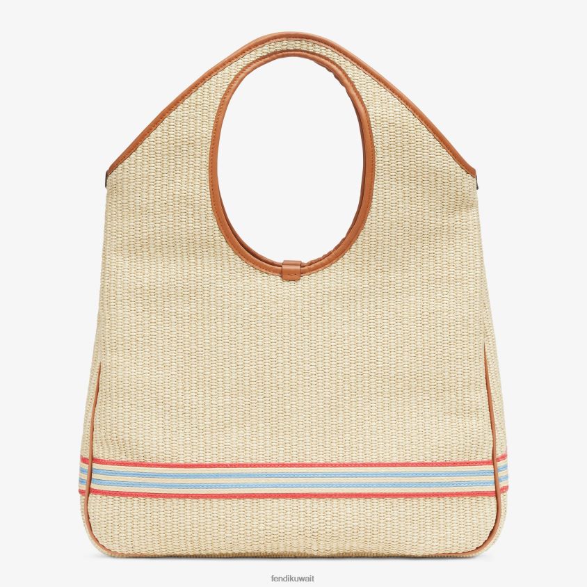 Fendi اللون البيج نحيف المتسوق في القش الطبيعي RTJZ596 مُكَمِّلات