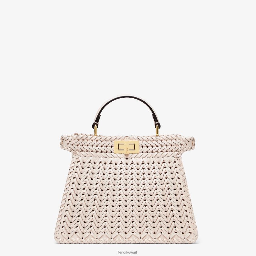 Fendi اللون البيج نحيف حقيبة جلدية متشابكة الكاميليا RTJZ556 مُكَمِّلات