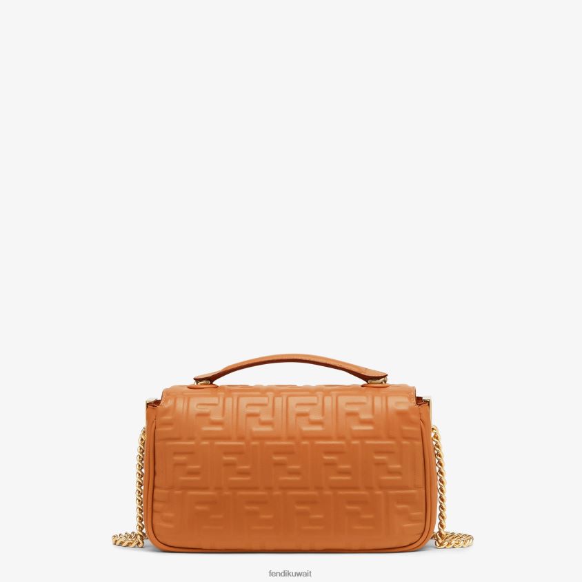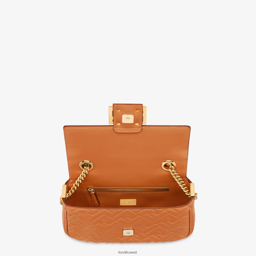 حقيبة باغيت متوسطة الحجم ومزودة بسلسلة مصنوعة من جلد نابا الناعم باللون البني مع شعار FF ثلاثي الأبعاد. مزين بإبزيم على شكل حرف FF.
