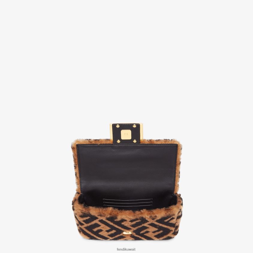 حقيبة باغيت صغيرة أيقونية مصنوعة من جلد الغنم الناعم مع طبعة شعار FF باللونين البني والأسود. مزينة بإبزيم على شكل حرف ff.