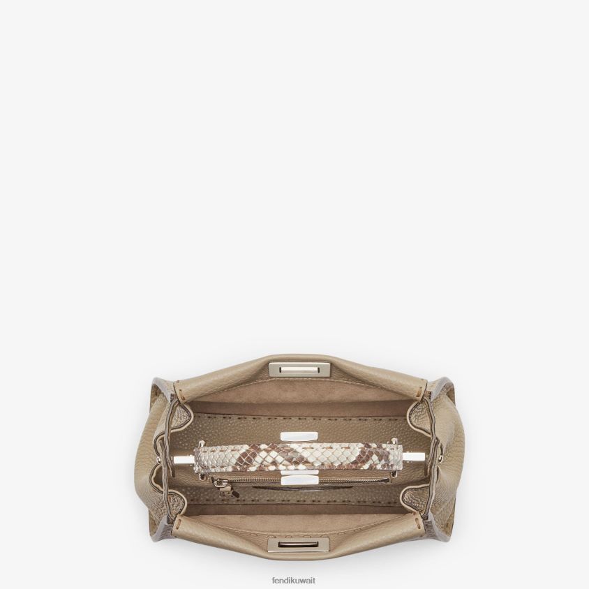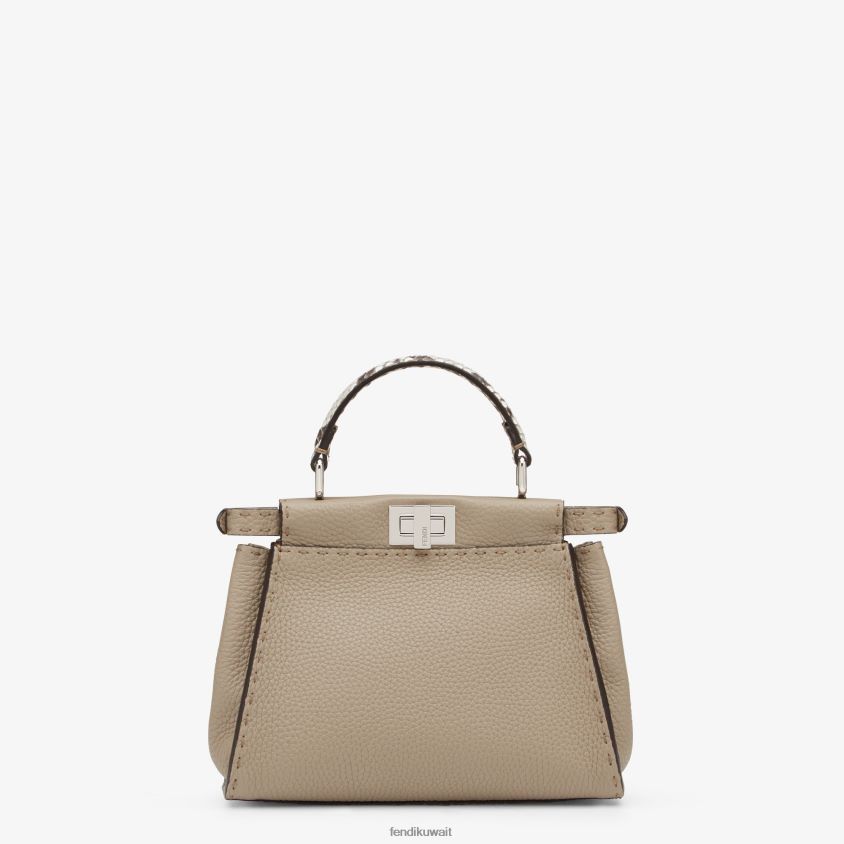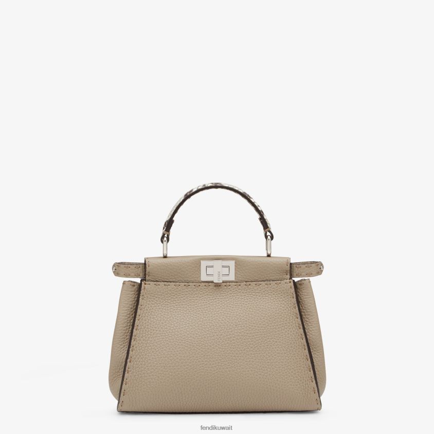 حقيبة بيكابو صغيرة أيقونية مصنوعة من جلد كويو رومانو باللون الرمادي الحمامي، مع خياطة يدوية ومزينة بقفل كلاسيكي ملتوي على كلا الجانبين.