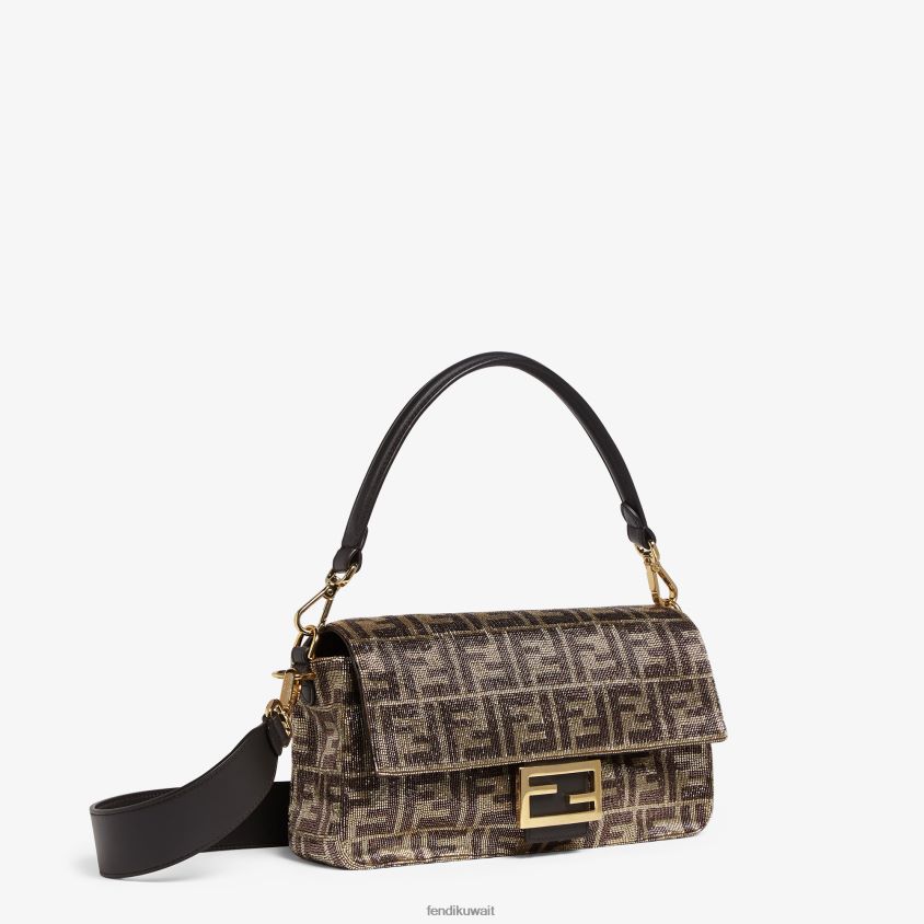 حقيبة باغيت متوسطة الحجم ومطرزة بالكامل بخرز بوق ثنائي اللون مما يخلق شعار ff. مزينة بحلية من الجلد باللون الأسود ومشبك على شكل حرف ff.