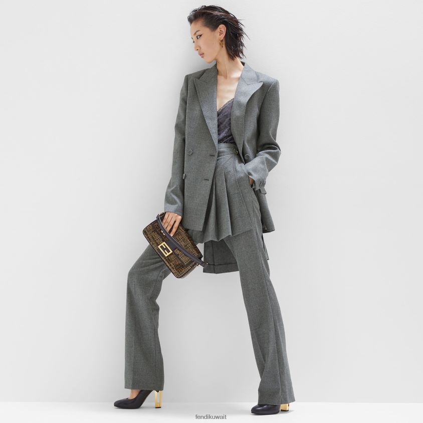 Fendi بني نحيف حقيبة من قماش الجاكار مع الترتر RTJZ544 مُكَمِّلات
