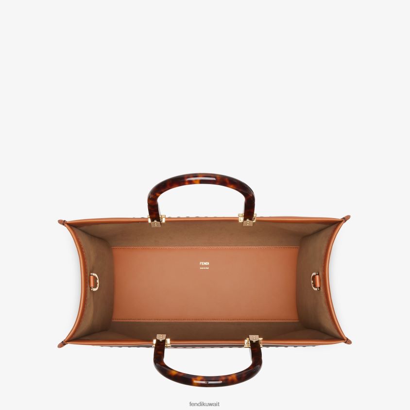 Fendi بني نحيف متسوق جلدي متوسط الحجم من صن شاين RTJZ523 مُكَمِّلات